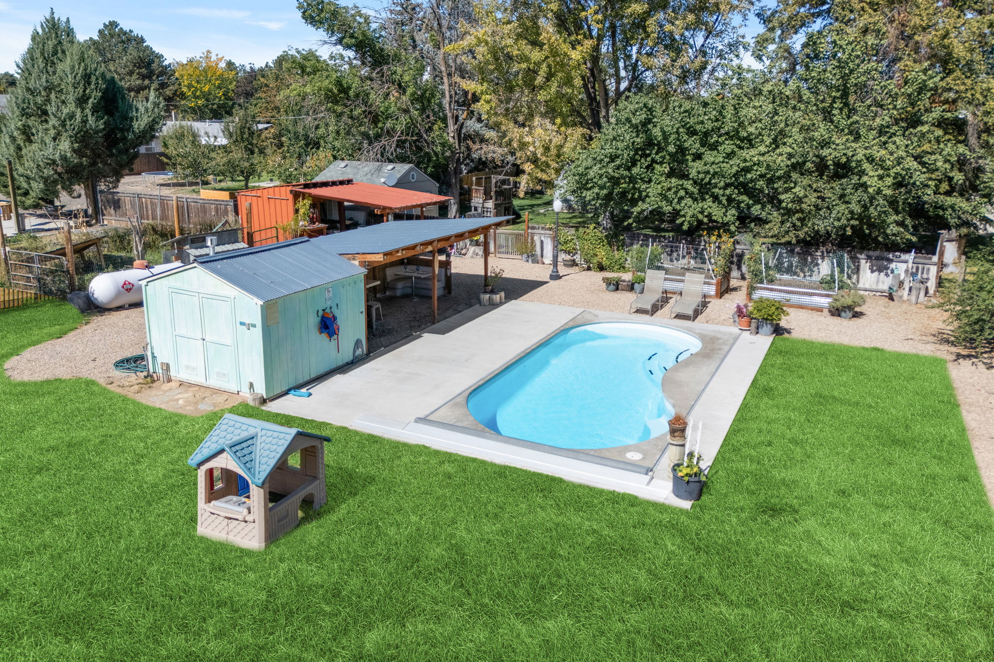 $585,000 -INCREDIBLE opportunity in SW Boise to live in a single-level home on just over an acre with a 4-bedroom 2-bath, offering space to live, entertain, and enjoy Idaho’s outdoor lifestyle. The backyard is a retreat with an inground saline heated pool, tiki-style pool bar, expansive deck, and an orchard with 13 fruit trees (apple, cherry, pear, peach, and apricot). Room for horses, chickens, or goats with no HOA, plus plenty of space to build your dream shop & don’t forget the RV parking, 3 storage sheds. Inside features a welcoming floor plan with a step-down living room and a wood-burning stove, newer windows, refrigerator, and range. The primary suite offers peaceful views and access to the dreamy backyard.